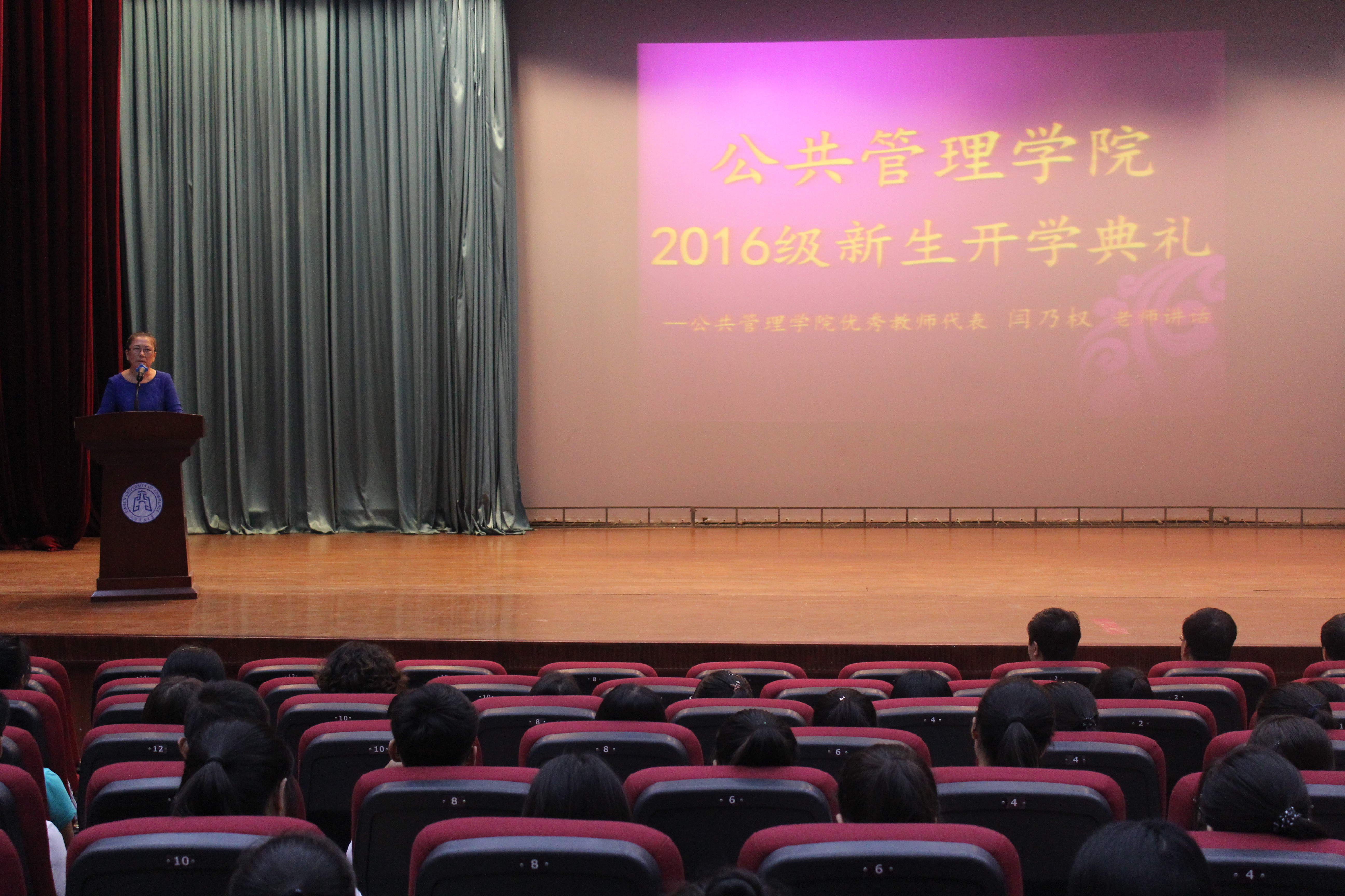 典礼在气势恢宏的yl7703永利校歌声中开始。首先,优秀教师代表闫乃权老师以幽默风趣的话语,开始了主旨为“Can I help you”“What can I do for you”的演讲。她同时希望新生们及时调整好心态,在大学中学会宽以待人,与同学们很好的相处,互相学习对方的长处,尽快融入大学,过好老员工活。