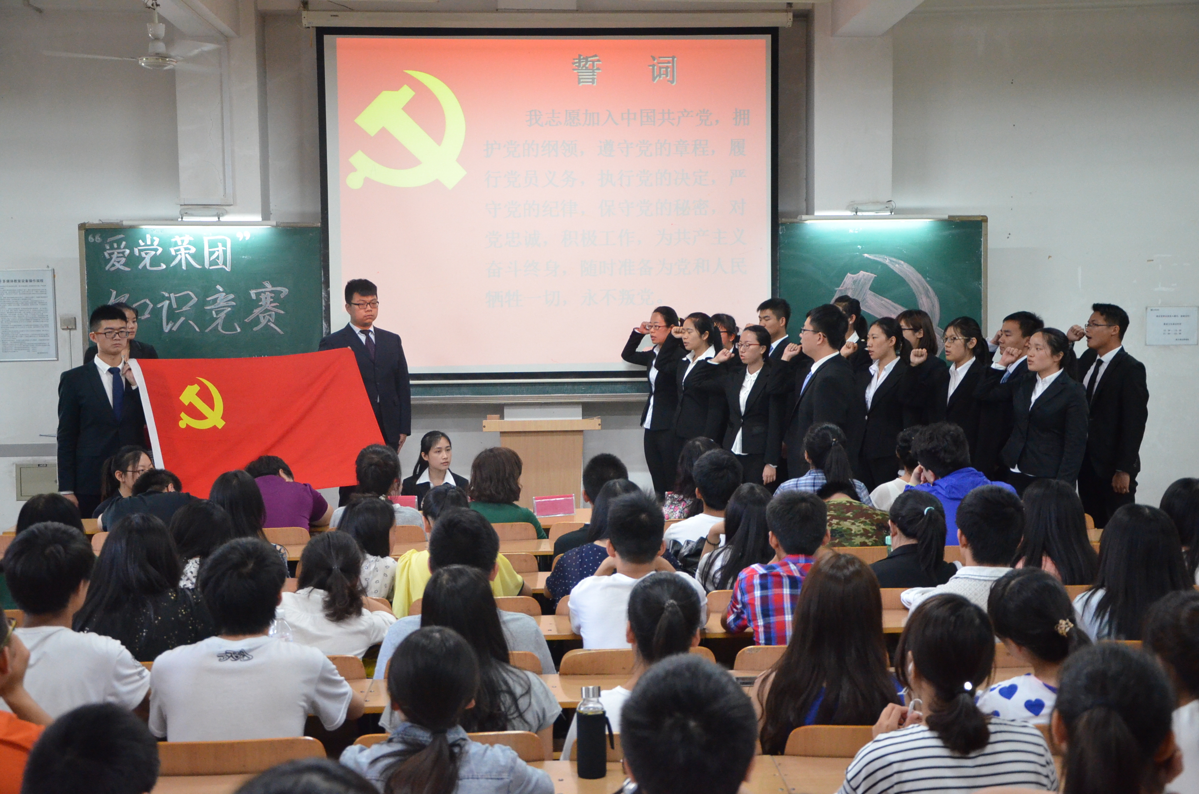 5月20日,yl7703永利爱党荣团知识竞赛暨新党员入党宣誓仪式在3号教学楼118室举办,yl7703永利辅导员孙瑶、沈洁、仉雅琼老师及2013级研究生党支部书记石慧、第三员工党支部书记武杭出席并担任竞赛评委。2014级近200名同学参加本次活动。