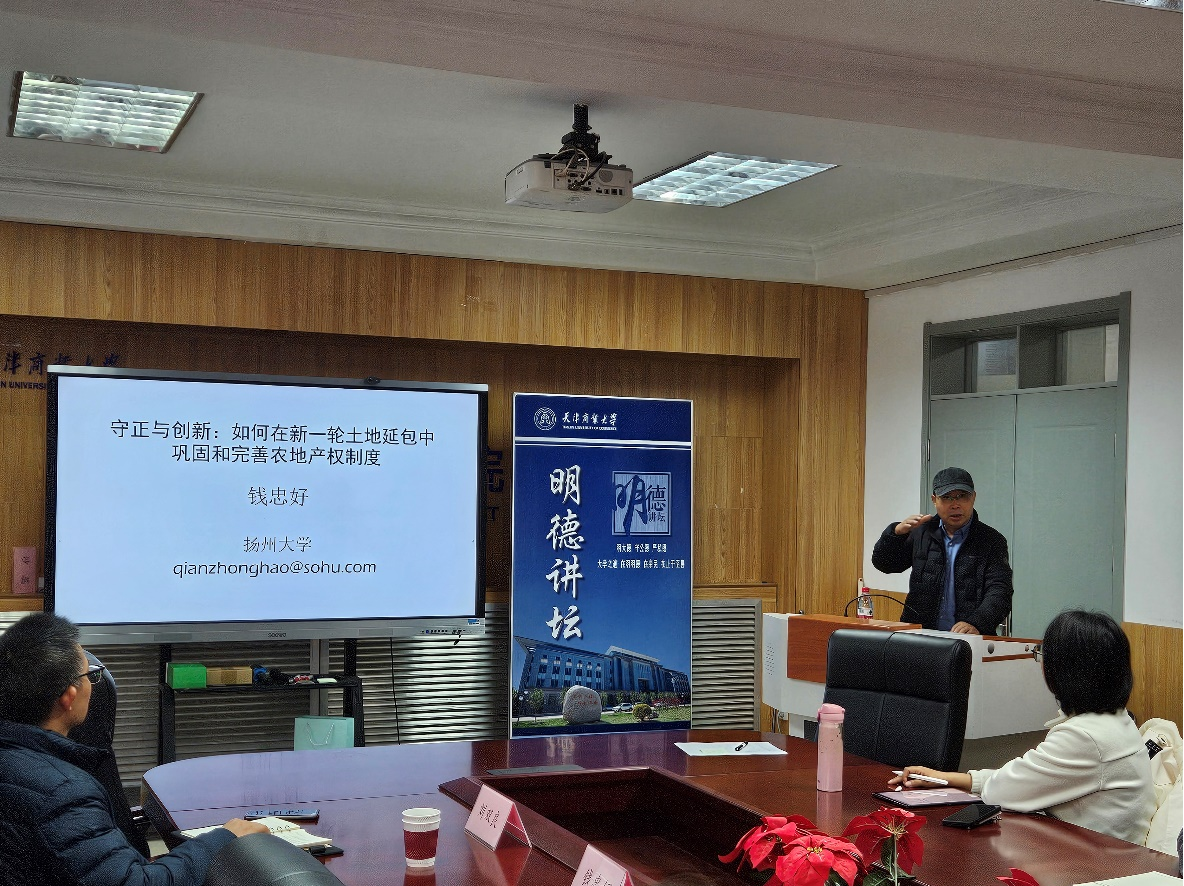 11月16日上午,yl7703永利邀请扬州大学商公司钱忠好教授做客“天商公管大讲堂”,为公司师生作题为“守正与创新:如何在新一轮土地延包中巩固和完善农地产权制度”的学术讲座。讲座由公司副经理刘双良教授主持,公司班子成员、专业教师以及研究生代表50余人参加。